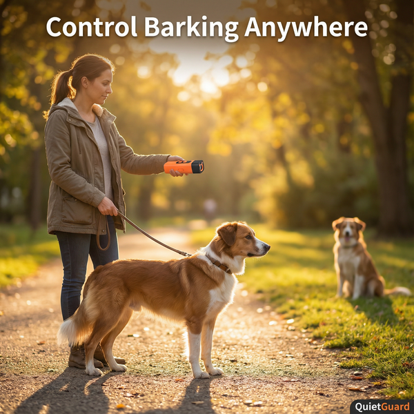 Yes. QuietGuard uses a harmless high-pitched tone that interrupts barking without chemicals or shock, making training safe and humane while reducing stress for your dog.